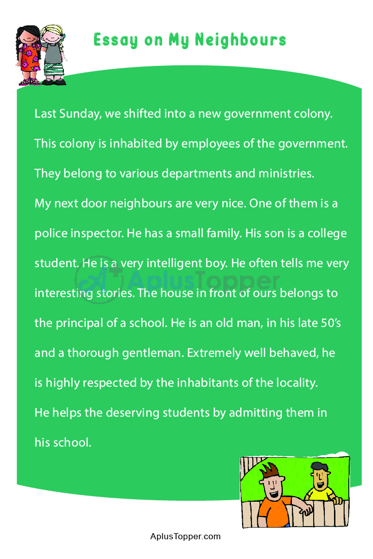 My Neighbours Essay – Given below is a Long and Short Essay on My Neighbours for aspirants of competitive exams, kids and students belonging to classes 1, 2, 3, 4, 5 6, 7, 8, 9, and 10. The My Neighbours essay 100, 150, 200, 250, 500 words in English helps the students with their class assignments, comprehension tasks, and even for competitive examinations.