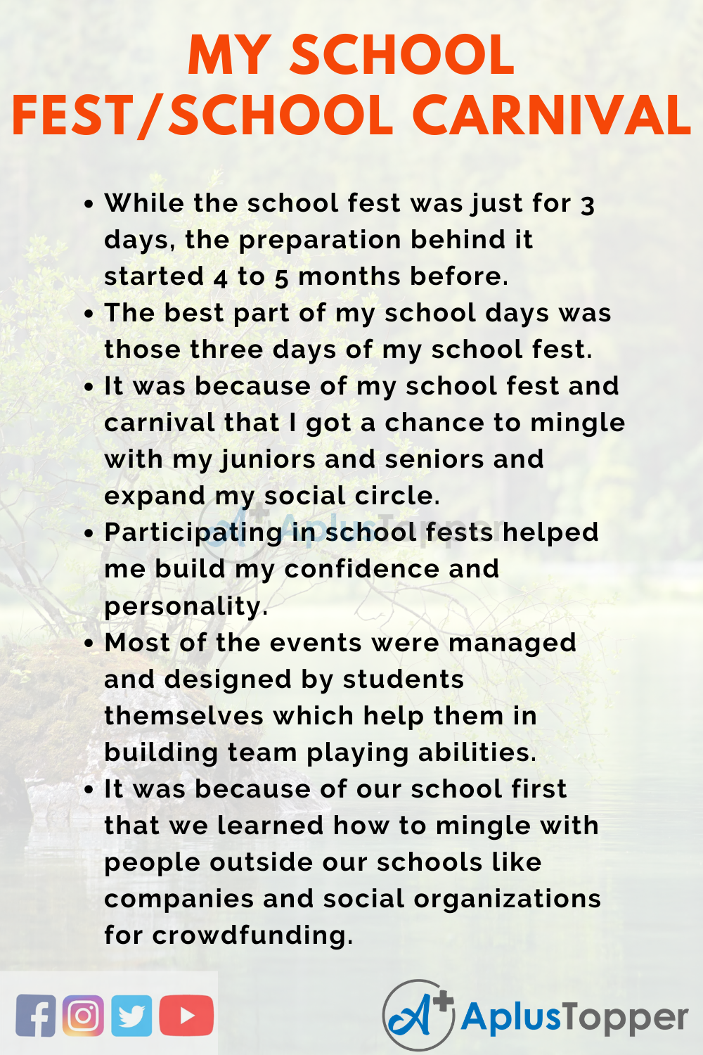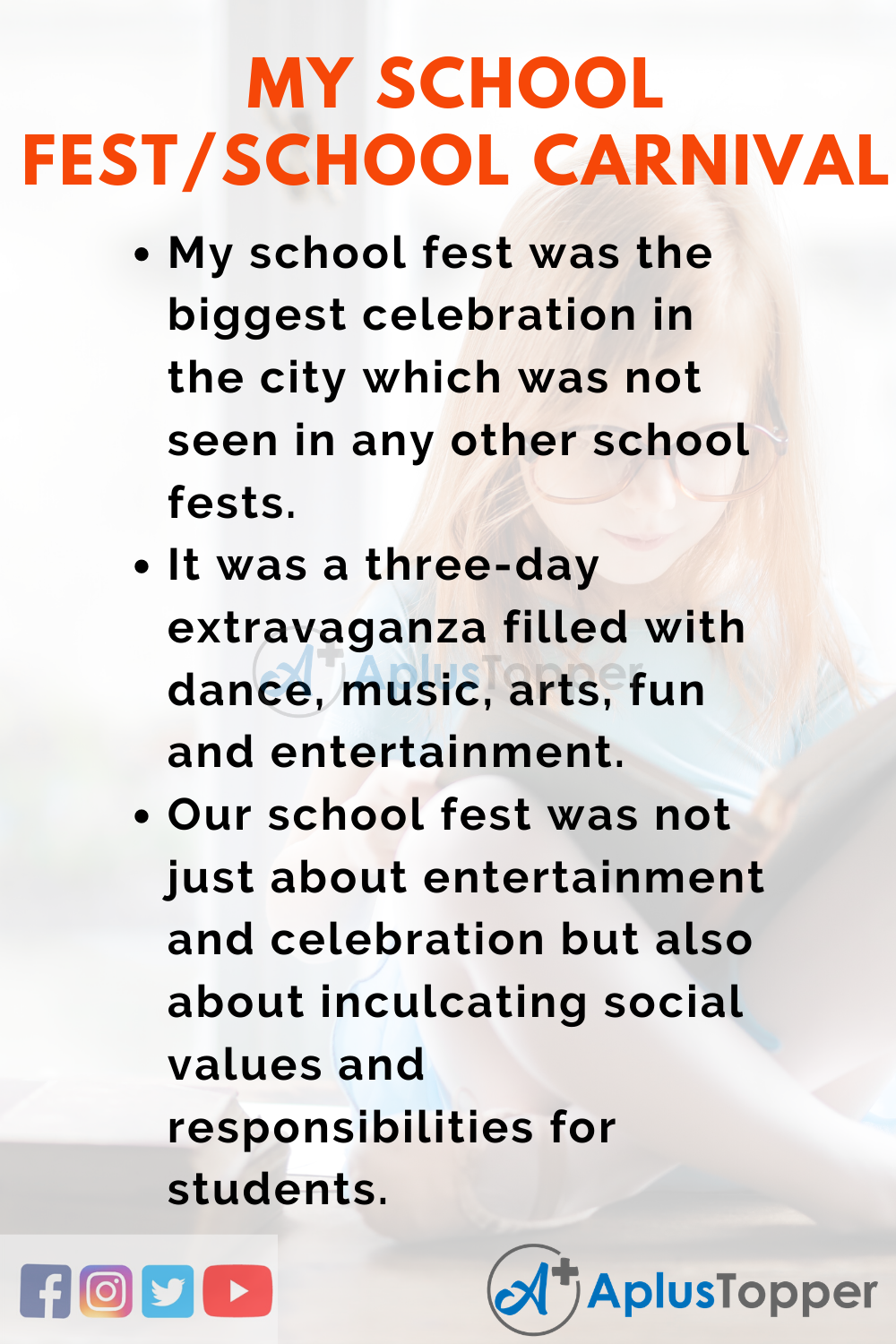 - It was because of my school fest and carnival that I got a chance to mingle with my juniors and seniors and expand my social circle.
