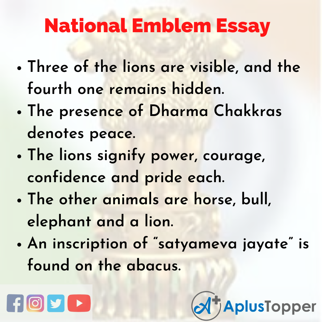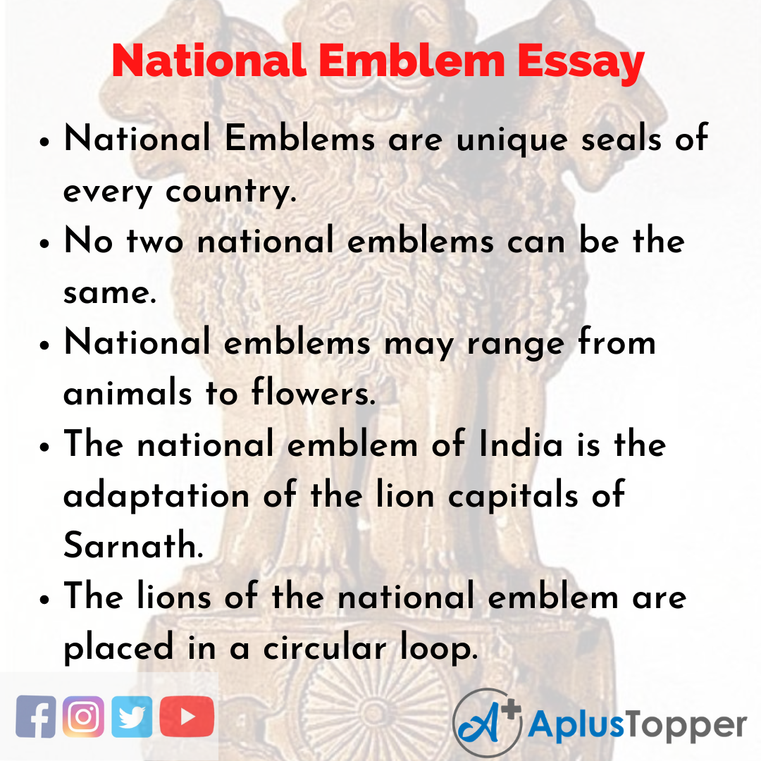 Short Essay on National Emblem is usually given to classes 1, 2, 3, 4, 5, and 6.