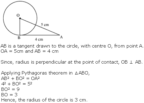Question 6. The length of a tangent from a point A at distance 5 cm from the centre of the circle is 4 cm. Find the radius of the circle.
