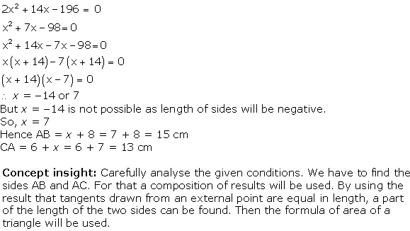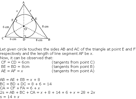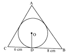 Question 12. A triangle ABC is drawn to circumscribe a circle of radius 4 cm such that the segments BD and DC into which BC is divided by the point of contact D are of lengths 8 cm and 6 cm respectively. Find the sides AB and AC.