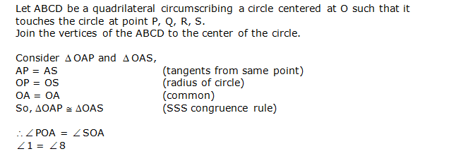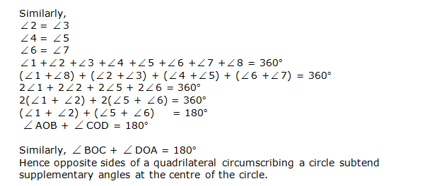 Question 13. Prove that opposite sides of a quadrilateral circumscribing a circle subtend supplementary angles at the centre of the circle.