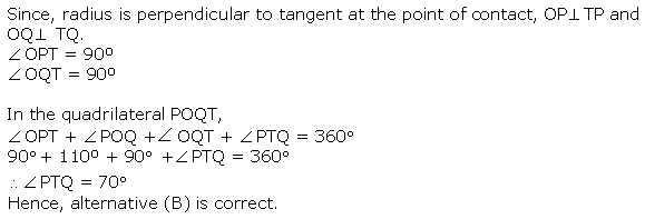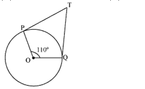 Question 2. In the given figure, if TP and TQ are the two tangents to a circle with centre O so that ∠POQ = 110°, then ∠PTQ is equal to