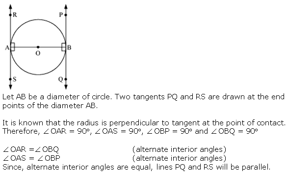 Question 4. Prove that the tangents drawn at the ends of a diameter of a circle are parallel.