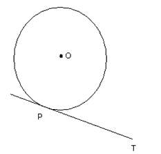Let P be the point of contact and PT be the tangent at the point P on the circle with centre O,