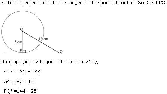 Concept Insight: To answer such type of problems, remember to use the result that the radius is perpendicular to the tangent at the point of contact and then make use of pythagoras theorem in the right traingle.