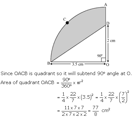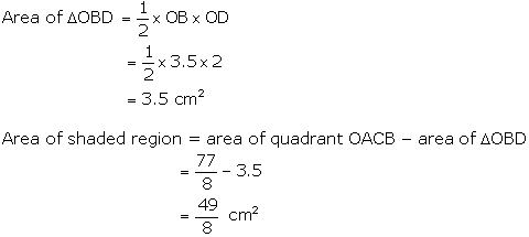 In Fig. 12.30, OACB is a quadrant of a circle with centre O and radius 3.5 cm. If OD = 2 cm, find the area of the