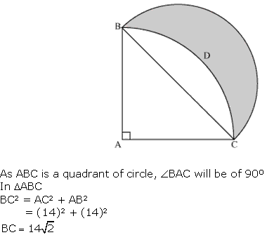 In Fig. 12.33, ABC is a quadrant of a circle of radius 14 cm and a semicircle is drawn with BC