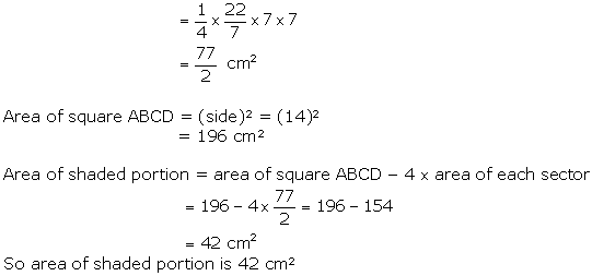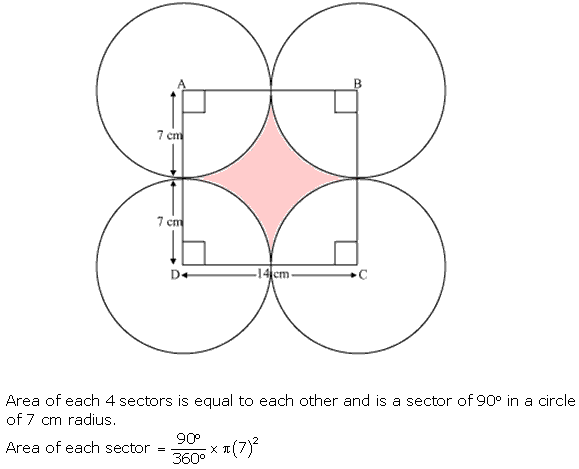 In Fig. 12.25, ABCD is a square of side 14 cm. With centres A, B, C and D, four circles are drawn such that each circle touch externally two of the remaining three circles. Find the area of the shaded region.