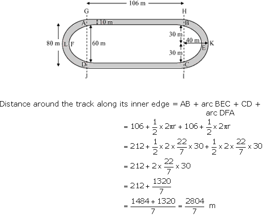 (i) the distance around the track along its inner edge