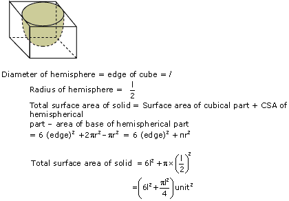 A hemispherical depression is cut out from one face of a cubical wooden block such that the diameter d of the hemisphere is equal to the edge of the cube. Determine the surface area of the remaining solid.