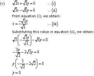 (v) √2x+ √3y = 0 ; √3x – √8y = 0