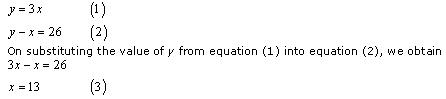 (i) The difference between two numbers is 26 and one number is three times the other. Find them.