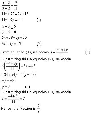 (v) A fraction becomes 9/11, if 2 is added to both the numerator and the denominator. If, 3 is added to both the numerator and the denominator it becomes 5/6 . Find the fraction.