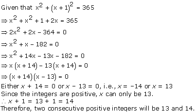 Question 4. Find two consecutive positive integers, sum of whose squares is 365.