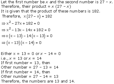 Question 3. Find two numbers whose sum is 27 and product is 182.