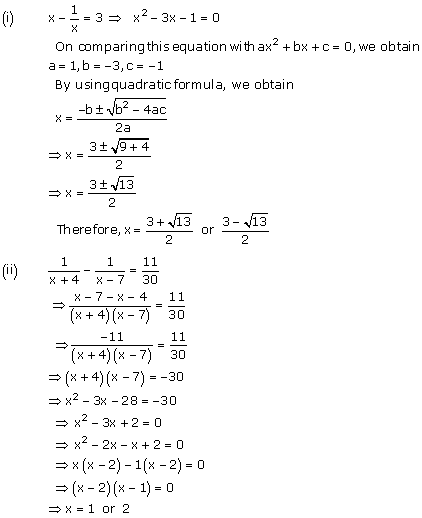 (ii) 1/x+4 – 1/x-7 = 11/30, x = -4, 7