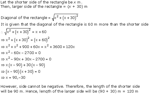 Question 6. The diagonal of a rectangular field is 60 metres more than the shorter side. If the longer side is 30 metres more than the shorter side, find the sides of the field.