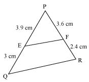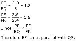 Given that PE = 3.9, EQ = 3, PF = 3.6, FR = 2.4