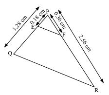 (iii) PQ = 1.28 cm, PR = 2.56 cm, PE = 0.18 cm and PF = 0.63 cm