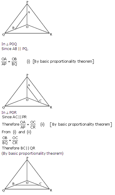 Question 6. In the figure, A, B and C are points on OP, OQ and OR respectively such that AB || PQ and AC || PR. Show that BC || QR.