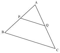 PQ is a line segment joining midpoints P and Q of line AB and AC respectively.