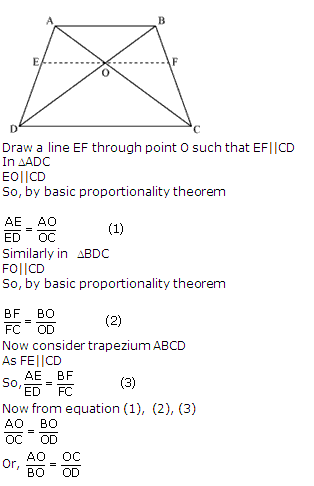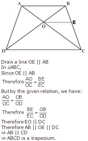 Question 10. The diagonals of a quadrilateral ABCD intersect each other at the point O such that \(\frac { AO }{ BO } =\frac { CO }{ DO } \). Show that ABCD is a trapezium.