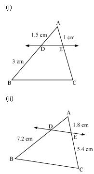 (ii) PE = 4 cm, QE = 4.5 cm, PF = 8 cm and RF = 9 cm