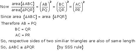 Question 4. If the areas of two similar triangles are equal, prove that they are congruent.