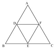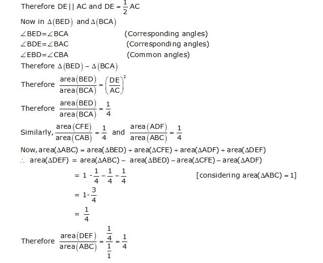 Question 5. D, E and F are respectively the mid-points of sides AB, BC and CA of ΔABC. Find the ratio of the area of ΔDEF and ΔABC.