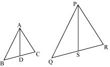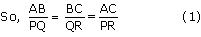 Let us assume two similar triangles as ∆ABC ~ ∆PQR