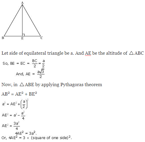 Question 16. In an equilateral triangle, prove that three times the square of one side is equal to four times the square of one of its altitudes.