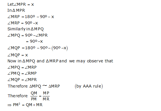 Question 2. PQR is a triangle right angled at P and M is a point on QR such that PM ⊥ QR. Show that PM2 = QM × MR.