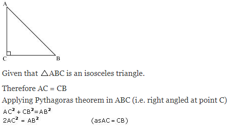 Question 4. ABC is an isosceles triangle right angled at C. Prove that AB2 = 2AC2 .
