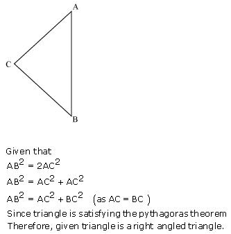 Question 5. ABC is an isosceles triangle with AC = BC. If AB2 = 2AC2, prove that ABC is a right triangle.