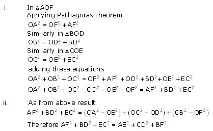 (i) OA2 + OB2 + OC2 – OD2 – OE2 – OF2 = AF2 + BD2 + CE2 ,