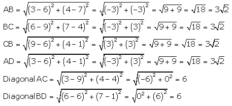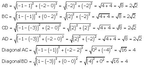 Here, all sides of this quadrilateral are of same length and also diagonals are of same length. So, given points are vertices of a square.