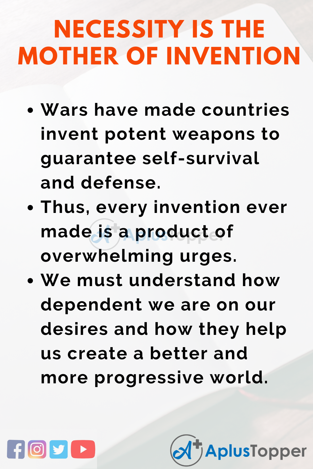 Necessity Is the Mother Of Invention Essay is usually given to classes 1, 2, 3, 4, 5, and 6.