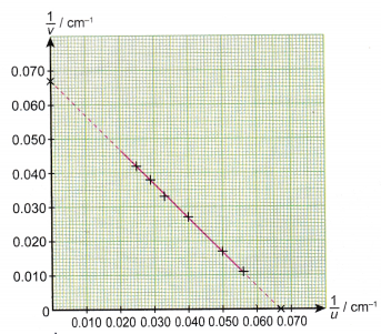- If a graph of 1/v against 1/u is plotted, the graph is as shown in Figure.