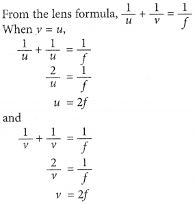 From the graph, when v = u, the coordinate of the point of intersection is given as (2f, 2f), where f is the focal length of the lens.