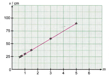The focal length of the lens is 15 cm. - Figure shows a graph of v against magnification, m for a lens experiment.