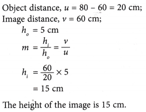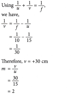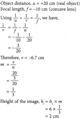Therefore, the image is real, inverted, 30 cm from the lens, on the opposite side of the object and magnified 2 times. - An object of height 6 cm is placed at a distance of 20 cm from a concave lens. Its focal length is 10 cm. Find the position and size of the image.