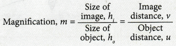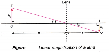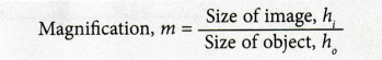 Definition: The ratio of the size of the image formed by refraction from the lens to the size of the object, is called linear magnification produced by the lens. It is represented by the symbol m.