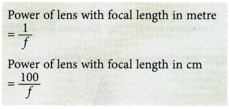 \( \text{Power of lens }\left( \text{in diopter} \right)\propto \frac{1}{\text{f (in}\,\,\text{metre)}}\)