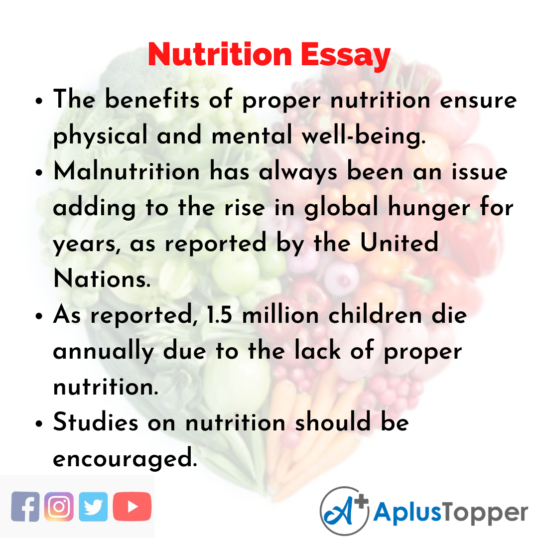 We are providing students with essay samples on a long essay of 500 words and a short essay of 150 words on the topic nutrition for reference.