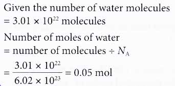 2. How many moles ofwater contain 3.01 × 1022 water molecules?