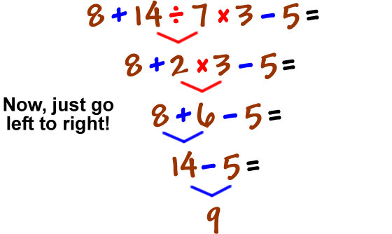 - Do the addition and subtraction last. Remember, if the operations are written next to each other work from left to right and check off the last two boxes.
