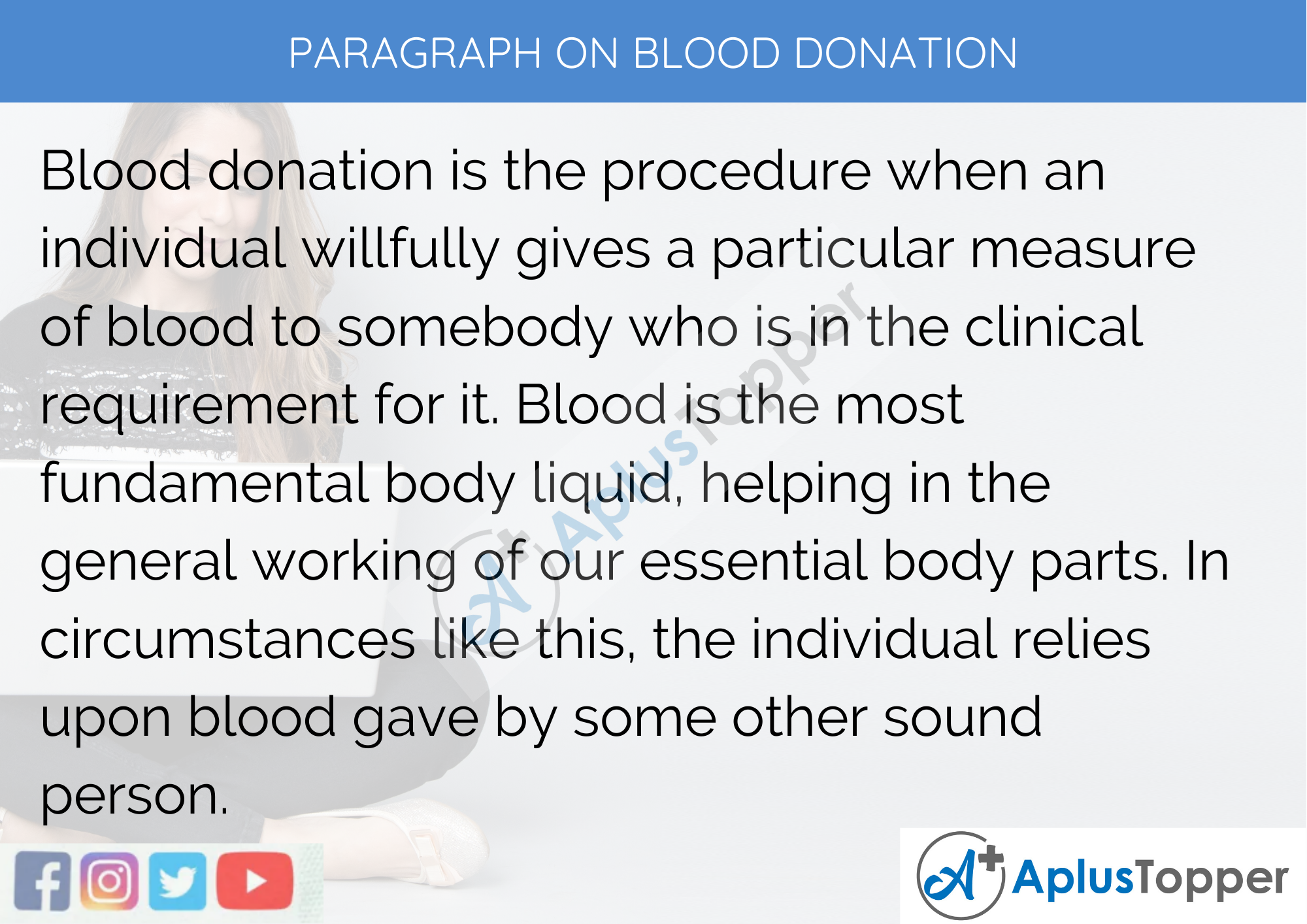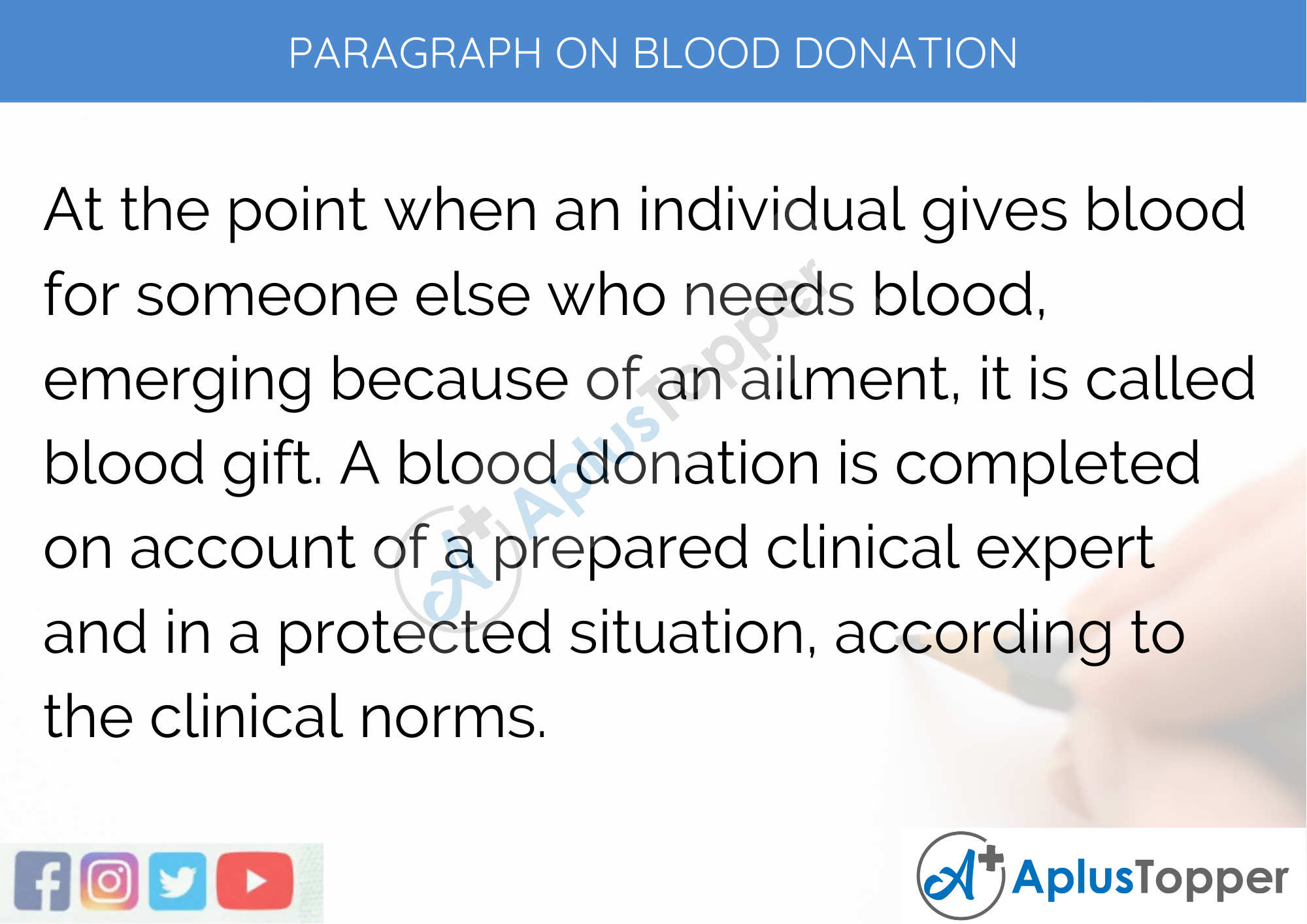 Paragraph On Blood Donation: The term blood donation is utilized when an individual intentionally gives blood for somebody who needs it (sick or in an emergency), potentially emerging because of an ailment. A blood gift is done in the oversight of a clinical expert and is helpful both for the beneficiary just as the benefactor.