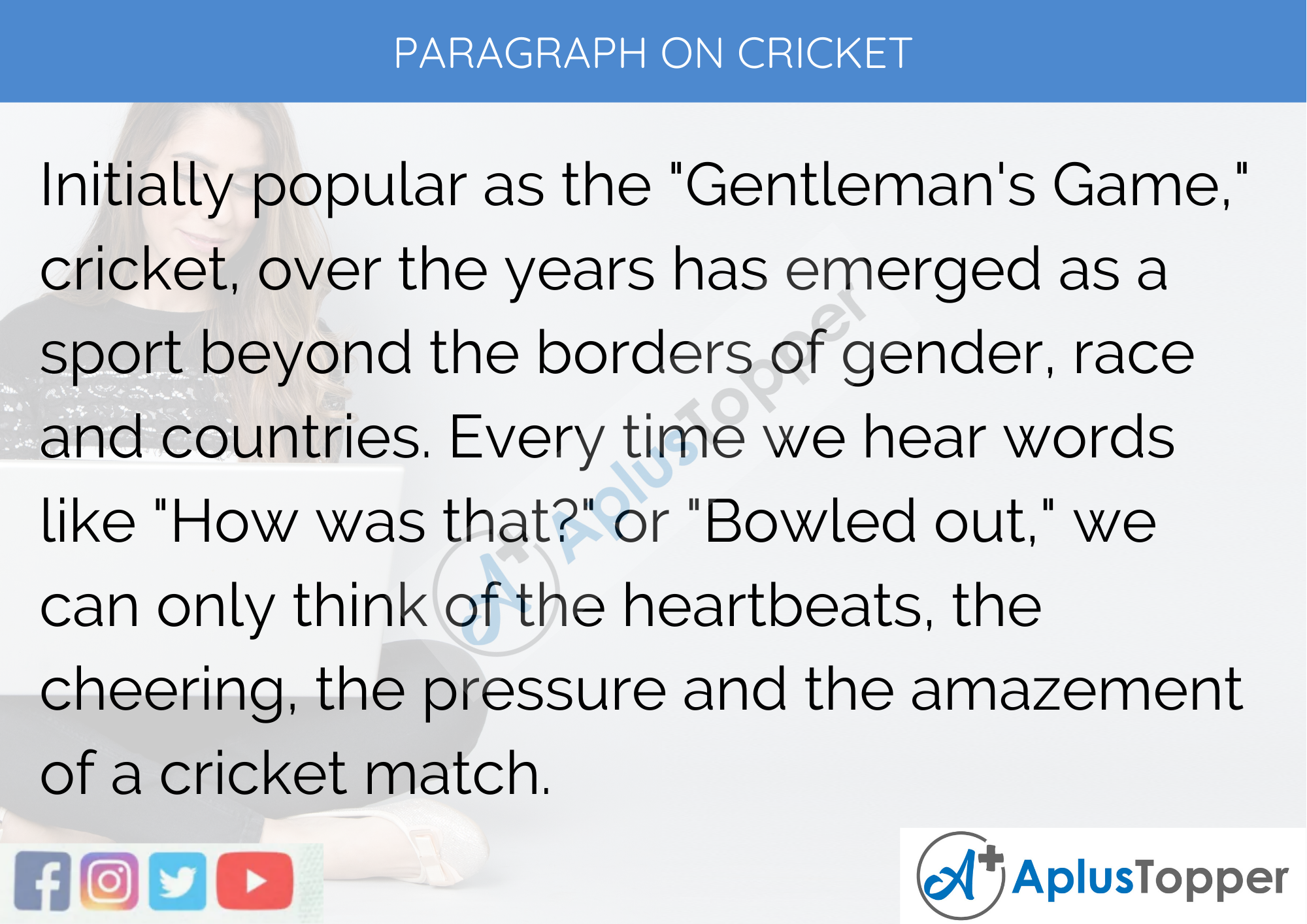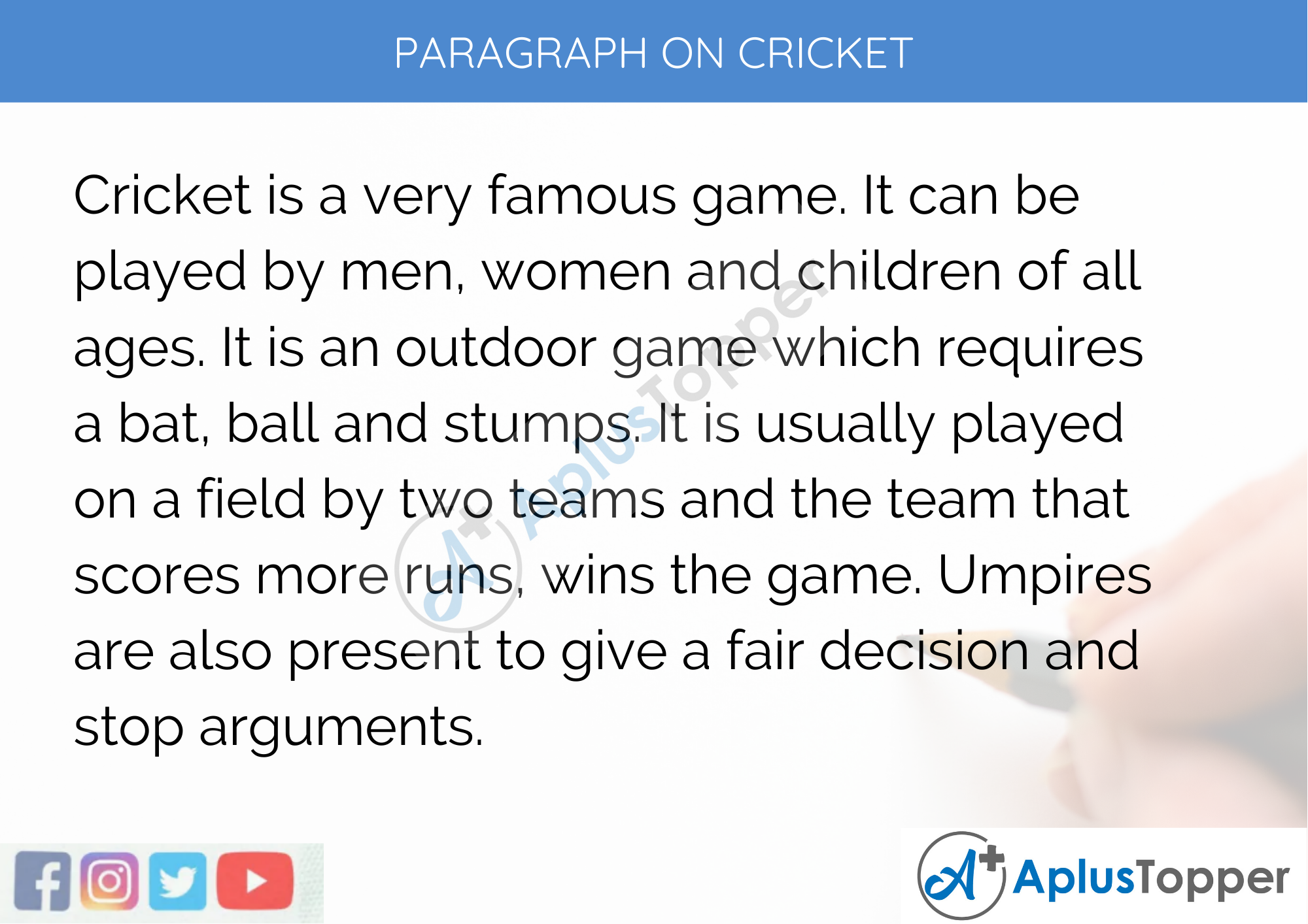 Cricket Paragraph For 1, 2, 3, 4, 5, 6, 7, 8, 9, 10, 11 And 12 Students