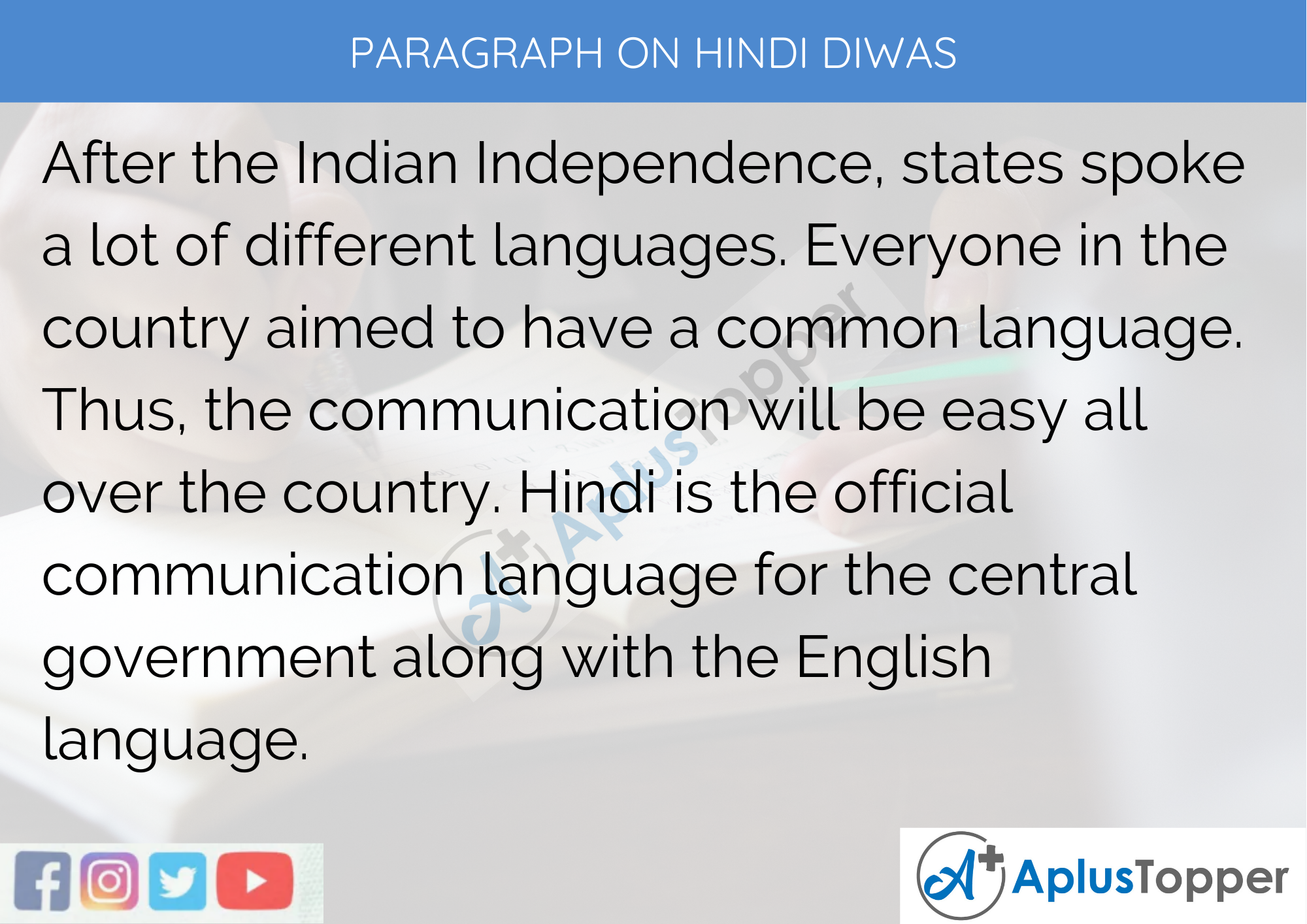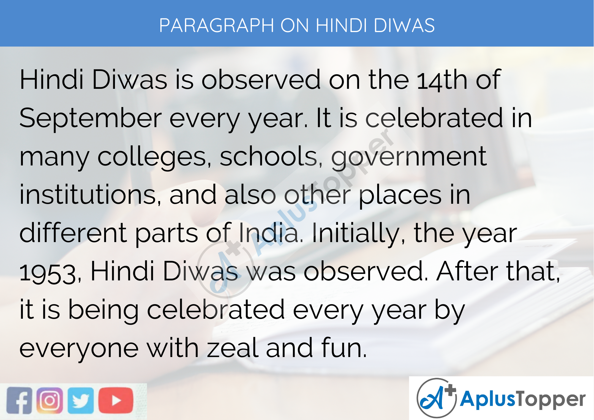 Paragraph On Hindi Diwas: Hindi Diwas falls on the 14th of September. It is an annual day and dedicated to the mother tongue, Hindi. On the eve of it, Hindi was adopted as the official language. Thus, Hindi Diwas is celebrated all over the country.